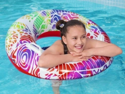 Élvezd a nyarat a Bestway tartós, 91 cm átmérőjű felfújható úszógumijával, kényelmes fogantyúkkal. Ideális 10 éves kortól és tinédzsereknek, biztonságos tartást, erős PVC anyagot és max. 80 kg teherbírást kínál.