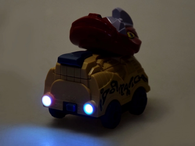 Két tematikus, dinoszauruszfejes kisautó színes fényekkel világít, és két sebességfokozatot kínál a még nagyobb élményért.