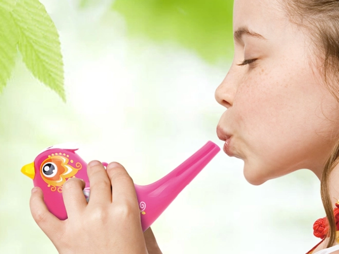 Ez a vidám madársíp működik hagyományos sípként és vizes zenélő játékként is. A felső nyíláson át vízzel feltöltve fújáskor varázslatosan csicsereg – a hang magasságát és színét a víz mennyisége és a fújás ereje befolyásolja. Víz nélkül tiszta és hangos hangot ad.