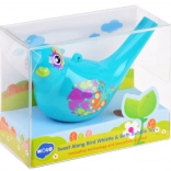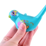 Feltöltés után finom csivitelést és különböző hangokat hoz létre a víz mennyiségétől és a fújás erősségétől függően.