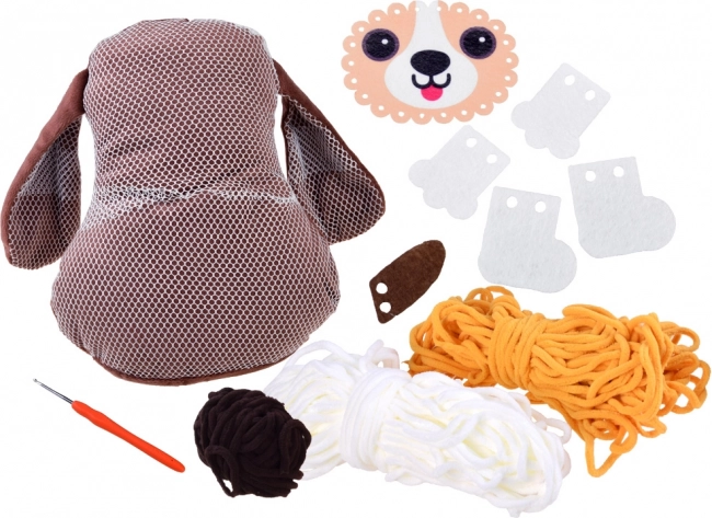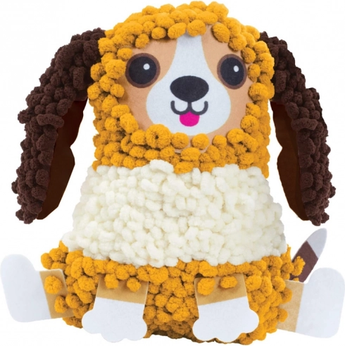 Kreatív, kutya alakú párnácska azoknak a gyerekeknek, akik szeretnek varrás és tű nélkül alkotni. Puha, selymes és biztonságos projekt, ahol a mellékelt horgolóhoroggal egyszerűen átfűzöd a fonalat a hálós zseben, és létrehozod a bolyhos bundát. A kész párna szép dekoráció és ölelgetni való játék párna a gyerekszobába.