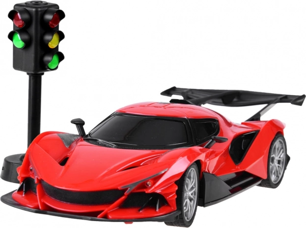 A csomag része egy jelzőlámpa is, amely közlekedési elemekkel színesíti a játékot és segít a gyerekeknek elsajátítani a közlekedési alapszabályokat. Az autó strapabíró műanyagból készült, hátsókerék-hajtással rendelkezik, valamint állítható összetartású első kerekekkel a stabilabb haladásért.