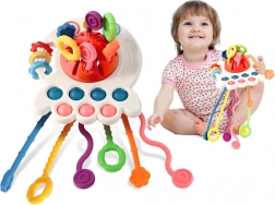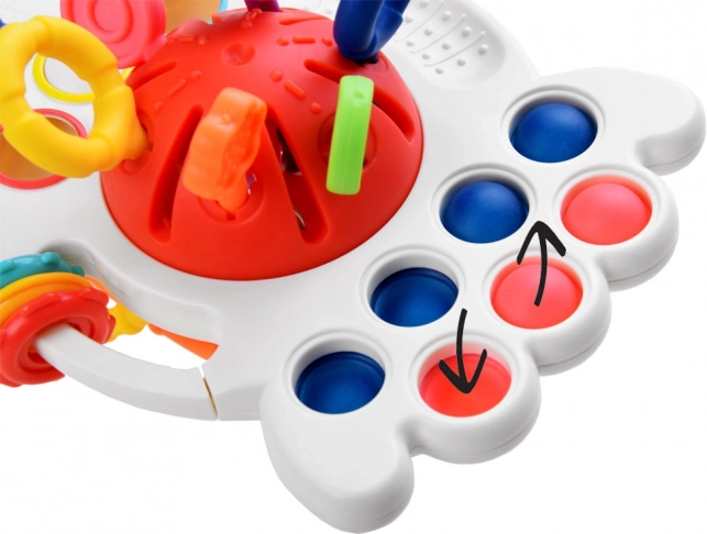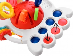A játék puha érzékszervi gombokkal van ellátva, amelyek támogatják a manipulációt. A gyerekek élvezhetik a különféle tapintási ingereket három műanyag gyűrű segítségével, amelyek különböző textúrával és markáns felületű golyókkal rendelkeznek.