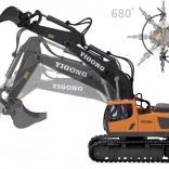 Ez az RC kotrógép játékméretben precíz kidolgozással és strapabíró műanyagból készült. A gumilánctalpaknak köszönhetően magabiztosan halad egyenetlen terepen is, a kar emelhető és süllyeszthető, a kanál pedig úgy merít anyagot, mint a valóságban. A LED fények és a motorhangok fokozzák a valósághű élményt.