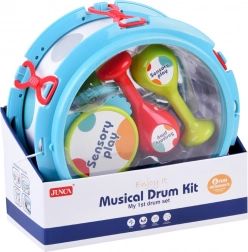 A műanyag kialakítás könnyű és kényelmes fogású. A dobverők jól illeszkednek a gyerekek kezébe, a dob pedig kellemes hangot ad az első zenei lépésekhez.