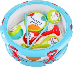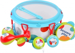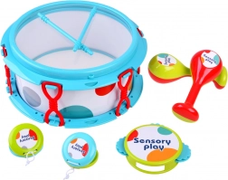 A különféle ütőhangszerek fejlesztik a hallást, a ritmusérzéket és a finommotorikát. A vidám színek aktív hangfelfedezésre ösztönzik a gyerekeket.