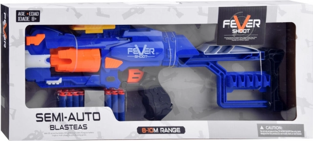 Élvezze a dinamikus akciós szórakozást a könnyű és tartós hablövedékes blasterrel. Az automata mechanizmus a levegőáramlás segítségével gyorsan juttatja ki a lövedékeket – csak kapcsolja ON állásba, és húzza a ravaszt. Az ergonomikus markolatnak és a stabil válltámasznak köszönhetően a gyerekek könnyen céloznak, a fegyver kényelmesen tartható.
