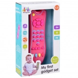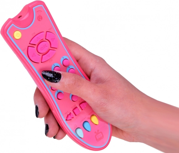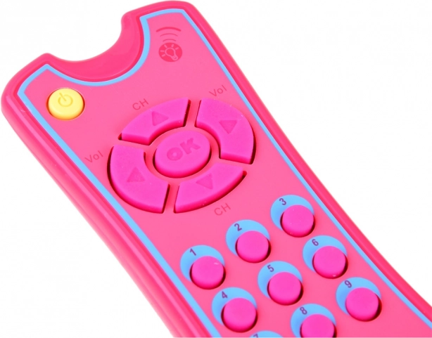 A távirányítón működő be-/kikapcsoló gomb található, a gombok megnyomásakor vidám dallamok szólnak, és felgyullad a fény. A puha gumigombok kellemes tapintásúak, és biztonságos módon motiválják a gyerekeket a felfedezésre és a felnőttek utánzására.