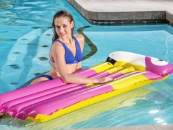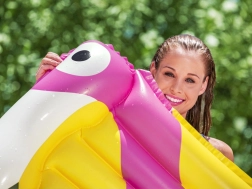 A nyugágy része az integrált felfújható párna, amely megtámasztja a fejet és a nyakat a valódi pihenésért. A színes, nyári, madármintás grafika stílust és jó hangulatot kölcsönöz a vízi szórakozásnak. Könnyű szerkezete lehetővé teszi a gyors felfújást, leeresztést, valamint az egyszerű hordozást és tárolást.