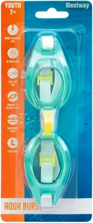 A Bestway Aqua Burst gyerek úszószemüveg ideális az első úszóleckékhez és a mindennapi vízi mókához. A tartós polikarbonát lencsék ütésálló védelmet nyújtanak, az UV-szűrő pedig óvja a szemeket az erős napsütéstől. A párásodásgátló bevonat tiszta látást segít biztosítani a víz alatt.