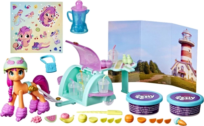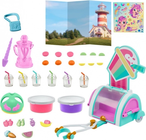 A My Little Pony koktélkészlet ihletet és szórakozást nyújt a gyerekeknek a szép pasztell színek és a rengeteg érdekes kiegészítő által. Sunny az mozgó koktélkocsijával utazhat, és finom gyümölcskoktélokat készíthet. A szabadon mozgó kerekekkel és a biztonság érdekében készített bukósisakkal biztosítva van, hogy a játék ne csak szórakoztató, hanem biztonságos is legyen.
