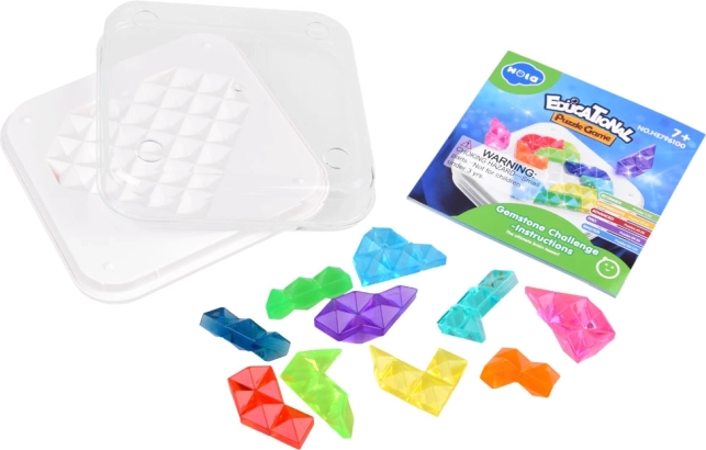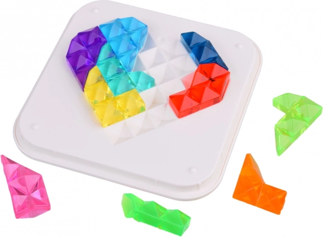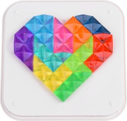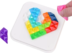 Fedezze fel a kreatív alkotás határtalan lehetőségeit ezzel az egyedülálló gyémánt kirakóval. A készlet 10 színes műanyag darabot tartalmaz, amelyek a mellékelt könyv vagy a saját fantáziád alapján különböző mintákba rakhatók össze. A tábla kétoldalú – egy szívvel és egy négyzettel. Az összes darabot játék után praktikusan el lehet tárolni az átlátszó dobozban, ami megkönnyíti a rendrakást és a tárolást.