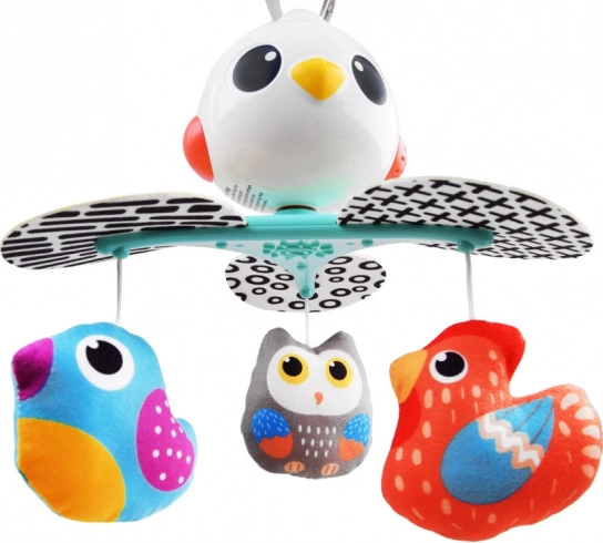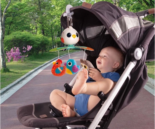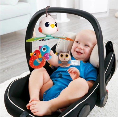 A madárformájú függő játékok felkeltik a figyelmet és ösztönzik a gyermeket a kéz kinyújtására és a játékra.