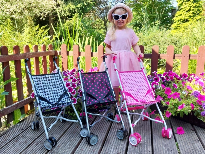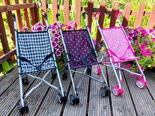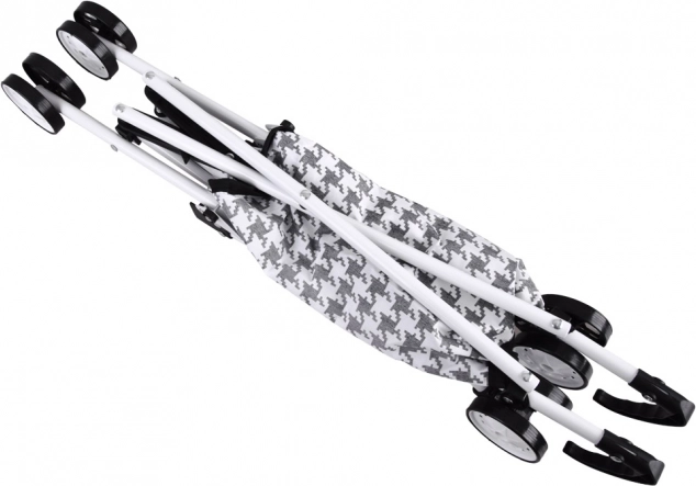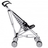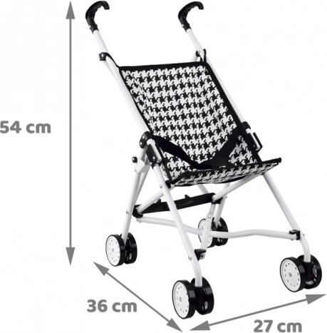 Könnyű és stabil babakocsi babák számára elegáns pepita mintával, amely minden gyereket megörvendeztet. A fém váz, a simán guruló dupla kerekek és a biztonsági öv révén a játék egyszerű és biztonságos. A babakocsi gyorsan összecsukható, könnyen irányítható, és tökéletes a mindennapi játékhoz otthon és a szabadban is.