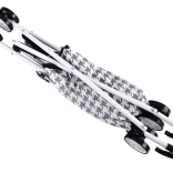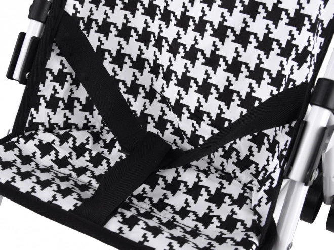 A fekete-fehér pepita minta elegáns megjelenést kölcsönöz a babakocsinak, amit a gyerekek azonnal megszeretnek.