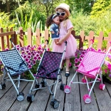 A praktikus kialakítás forgó, dupla kerekekkel sima manőverezést tesz lehetővé különböző felületeken. A stílusos textil plusz lendületet ad a játéknak, és a babakocsi remekül illik bármelyik gyerekszobai felszereléshez.