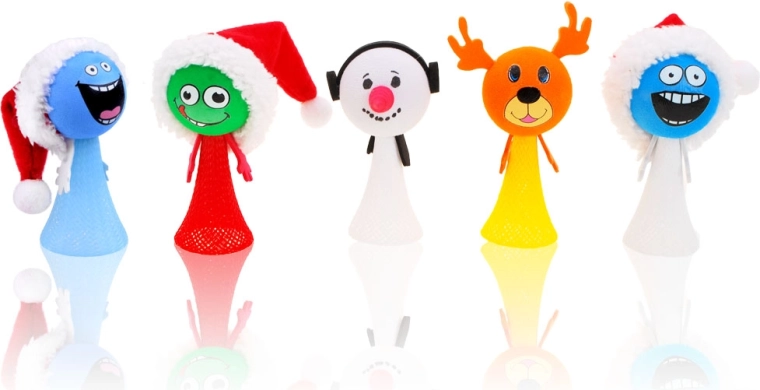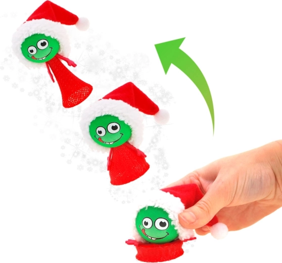 Vidám, ugráló manó – mókás rugócska, amely mindenkit megnevettet! Ez a játék tollaslabdára emlékeztet, de ünnepi öltözetben jelenik meg.