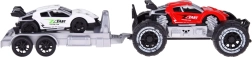 A készlet tartalmaz terepjárót, sportautót és pótkocsit – teljes megoldás különféle játékszcenáriókra.