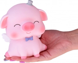 A rózsaszín malac fehér szárnyacskákkal, kék csokornyakkendővel és sárga koronával mosolyt csal az arcokra, és egyben stílusos dísze a gyerekszobának vagy az íróasztalnak.