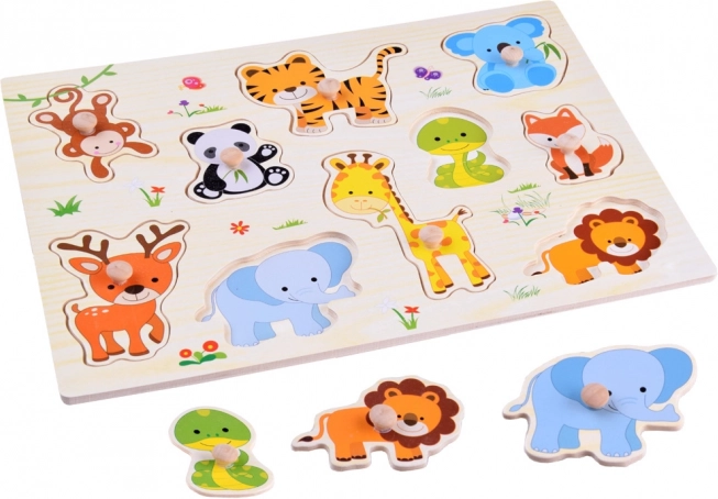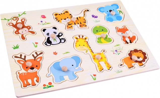 Aranyos állatokkal díszített fa kirakó, amely ötvözi a tanulást és a szórakozást. Játék közben a gyermek gyakorolhatja az összehasonlítást, a megfigyelőképességet és a kéz-szem koordinációt. Emellett segít új állatfajok megismerésében is. A fa puzzle garantáltan sok órányi nagyszerű szórakozást nyújt.