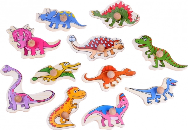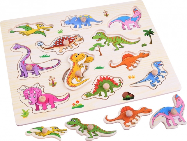 A formaberakó ideális az első kirakós élményekhez – a masszív fa tábla egyben tartja az összes elemet, a jól körülhatárolt formák pedig sikerélményt biztosítanak. A táblán összesen 11 dinoszaurusz található, köztük olyan kedvencek, mint a T‑rex, a triceratopsz és a stegosaurus.