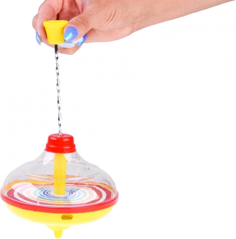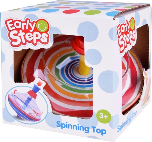 Elég lenyomni a felső dugattyút, és a pörgettyű forogni kezd. Ideális a kisgyermek kezekhez és a finommotorika gyakorlásához.
