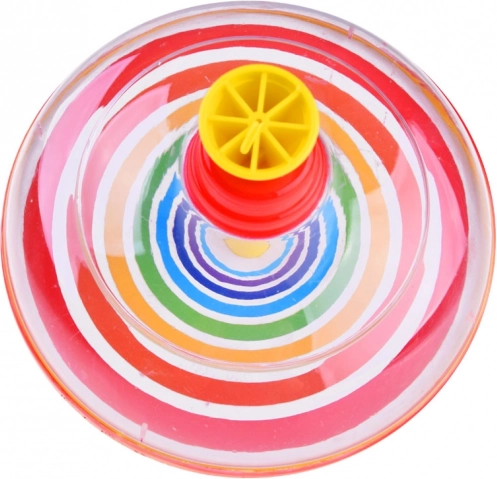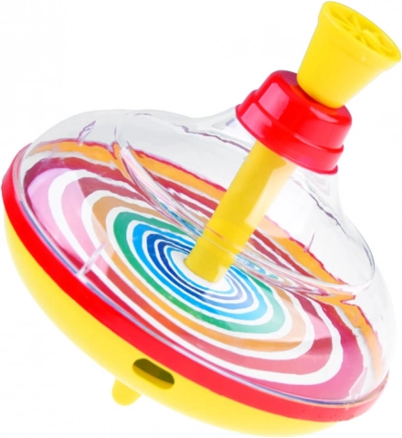 Fedezze fel a klasszikus varázsát: hagyományos színes pörgettyű átlátszó testtel és szivárványos gyűrűkkel, amely a felső dugattyú lenyomására forogni kezd, és lenyűgöző vizuális effekteket hoz létre. Egyszerű kezelhetőség, masszív műanyag kivitel fém dugattyúval és forgás közbeni hang – mindez leköti a gyerekek figyelmét és támogatja a motorika és a koordináció fejlődését.