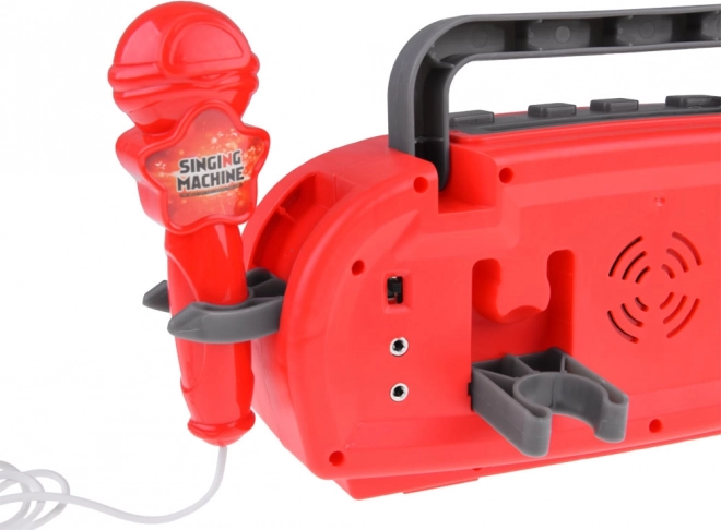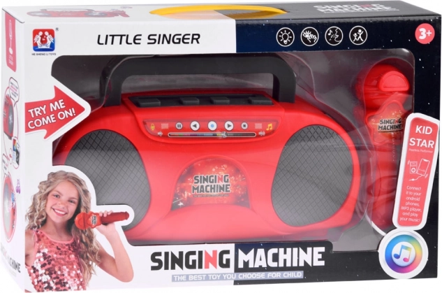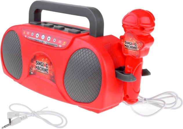 Ez a gyerek karaoke vonzó piros színben rengeteg szórakozást kínál – a mikrofonos énekléstől a kedvenc dalok lejátszásáig mobilról vagy MP3 lejátszóról. A mikrofon csatlakoztatása után a készülék felerősíti a hangot, így a kis énekesek úgy ragyognak, mint a színpadon. A beépített fényeffektek minden fellépésnek megadják a megfelelő hangulatot.