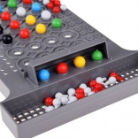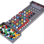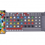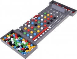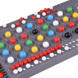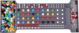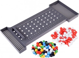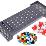 Szürke műanyag tábla rácsozattal és tároló rekeszekkel, amely a színes pöcköket mindig kéznél tartja, a játékot pedig áttekinthetővé teszi.