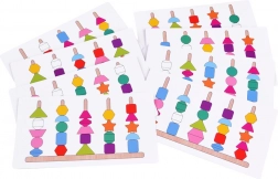 Fűzzétek fel a gyöngyöket a zsinórokra, vagy rakjátok a tüskékre a minták szerint. A gyerekek maguk választhatják, mihez van kedvük – közben pedig gyakorolják a motorikát és a koncentrációt.