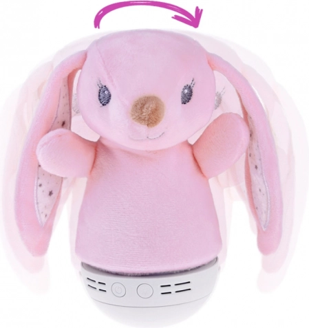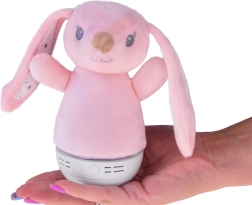 Ez a finom rózsaszín nyuszi a puha plüsst ötvözi az éjjeli lámpa és a megnyugtató zene praktikus funkcióival. A váltakozó fények gyengéden beragyogják a szobát, kellemes, biztonságos hangulatot teremtve lefekvés előtt. Az integrált zenegép dallamokkal segíti a gyerekeket könnyebben elaludni és megnyugodni.