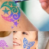 A csillámtetoválások könnyen eltávolíthatók, és érzékeny gyermekbőrre is biztonságosak.