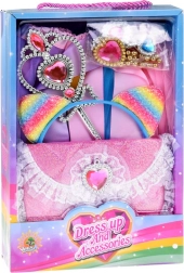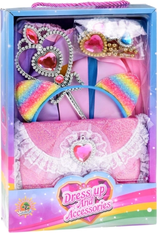 - Táska és kiegészítők: Aranyos, csillogó táska szívecskével és gyönyörű ékszerek, amelyek eleganciát kölcsönöznek minden jelmeznek.