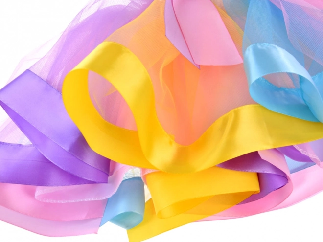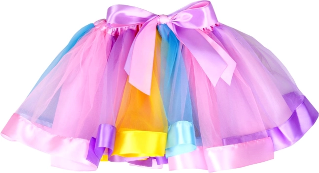 - Tüll szoknya: Gyönyörű, könnyű és színes szoknya szivárványos hatással, amely teljessé teszi a kis tündér megjelenését.