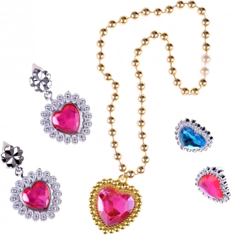 Arany nyaklánc rózsaszín szívecskével, hozzá illő fülbevalók és gyűrűk, melyek minden kis tündér megjelenésének különleges csillogást adnak. Ideális bármilyen alkalomra.