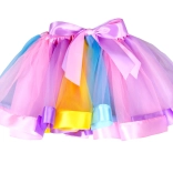 Tökéletes szoknyát keres a kis táncosoknak? Szivárványos átmenetű, rózsaszín masnival díszített tüll szoknyánk a tökéletes választás.