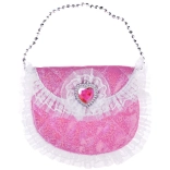 Ez a kis gyerek kézitáska flitterekkel és csipkés szegéllyel tökéletes kiegészítő a kis tündérek játékos kalandjaihoz.