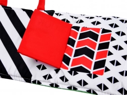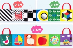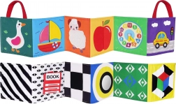 Ez az összehajtható érzékszervi könyv a gyermek érzékszerveinek fejlesztésére szolgál az életük első hónapjaitól kezdve. Tartalmaz különféle textúrákat, zizegő elemeket, tükröt és hosszú textilszalagokat, amelyek segítenek a tapintás, látás és hallás stimulálásában. Összehajtva kompakt és könnyen szállítható, így ideális utazásokhoz. Az összefűzött fülek megkönnyítik a gyermek számára a tartást és hordozást.