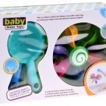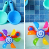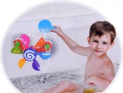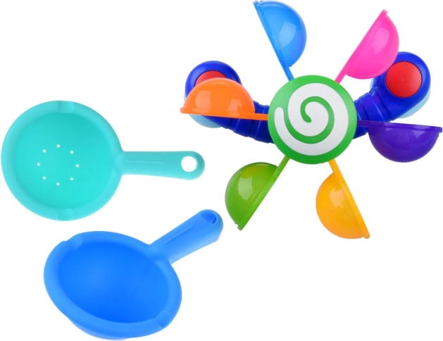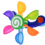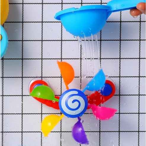 Engedje meg gyermekének, hogy élvezze a szórakozást a színes mozgó poharakkal, melyek forognak, amikor vizet öntenek rájuk, így a gyermek megtanulja a mozgás és a visszacsatolás fogalmakat. Ez a játék támogatja a motoros fejlődést, kognitív funkciókat és koordinációs képességeket. Játék közben a gyermek megtanulhatja a színeket, a számolást és elképzelheti különféle történeteket. Ez a fürdőszobai játék könnyen mozgatható és szétszerelhető, amely lehetővé teszi annak elhelyezését a kád, zuhanyzó vagy medence oldalán. A színes szivárvány poharak körbe-körbe forognak, miközben a víz csobog és serkenti a gyermek hallását.