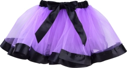Többrétegű lila tüll szatén szegéllyel, amely volumenet és könnyedséget ad. A gumis derék kényelmesen illeszkedik és alkalmazkodik az alkatra.
