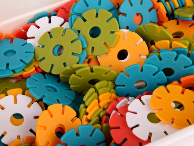 A készlet 506 darabot tartalmaz 6 különböző színben: fehér, sárga, narancs, piros, zöld, kék. A kockák műanyag dobozban vannak tárolva fedéllel, ami könnyű szállítást tesz lehetővé. A játék végeztével a gyerek könnyedén elpakolhatja a készletet.