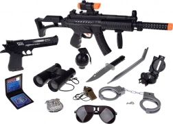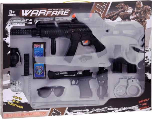A készlet teljes felszerelést biztosít a valósághű rendőri vagy katonai tiszt szerepjátékhoz.