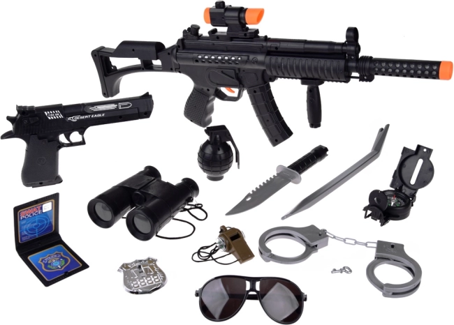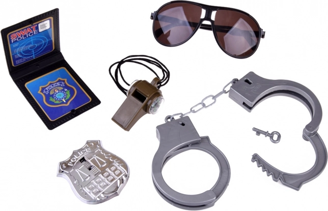 Ez a vidám rendőrségi készlet remek ajándék minden kisgyermek számára, aki érdeklődik a rendőrségi témák iránt. Összesen tizenkét valósághű műanyag kiegészítőt tartalmaz, amelyek hűen utánozzák a rendőrségi felszerelést: