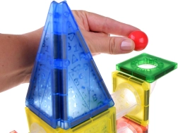 Az építőkészletek nagyon könnyen összekapcsolhatók, lehetővé téve a gyerekek számára, hogy különféle labirintusokat és csúszdákat építsenek, és közben golyókat is átengedjenek rajtuk. A mágneses elemek és a műanyag részek mellett a készlet képekkel ellátott útmutatót is tartalmaz.