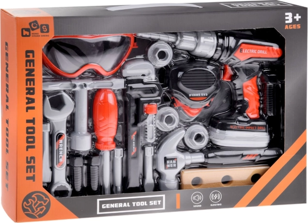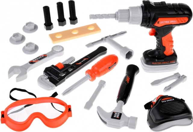 - Teljes felszereltség: A készlet tartalmazza a fúrót, kalapácsot, kulcsokat és védőszemüveget, ami lehetővé teszi a különféle javítási játékokat.