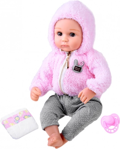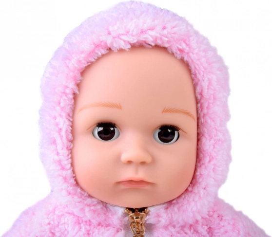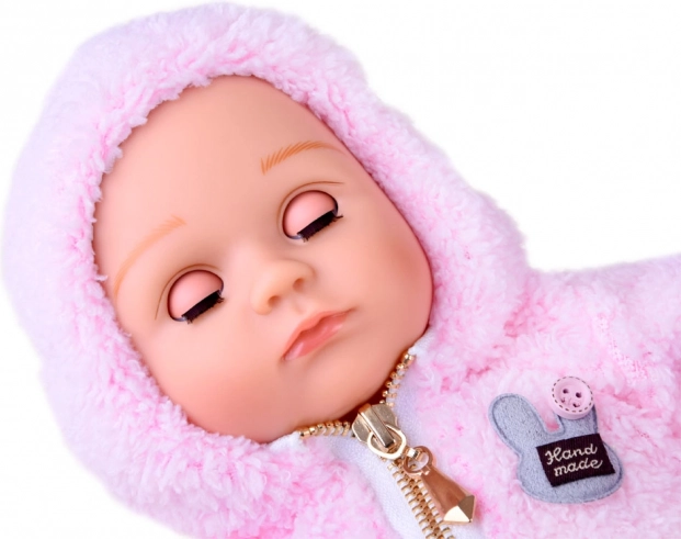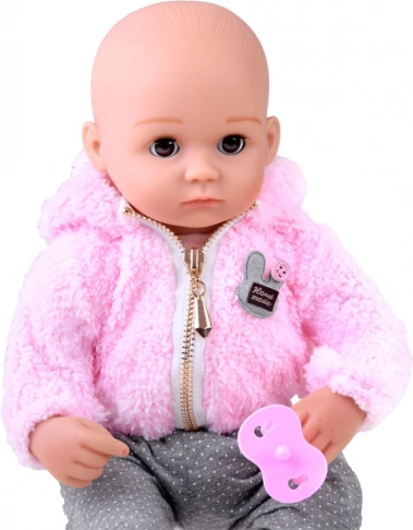 A baba újszülöttre hasonlít. Puha textil teste van, a feje, a karjai és a lábai pedig kemény gumiból készültek. Ha lefekteted a babát, a szemei becsukódnak. Akárcsak egy igazi újszülött, nincs haja a fején, de a hideg ellen meleg, kellemes rózsaszín kapucnis pulóver védi. Az egész öltözéket stílusos szürke, pöttyös leggings egészíti ki.