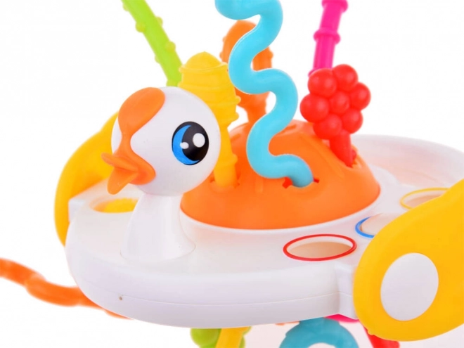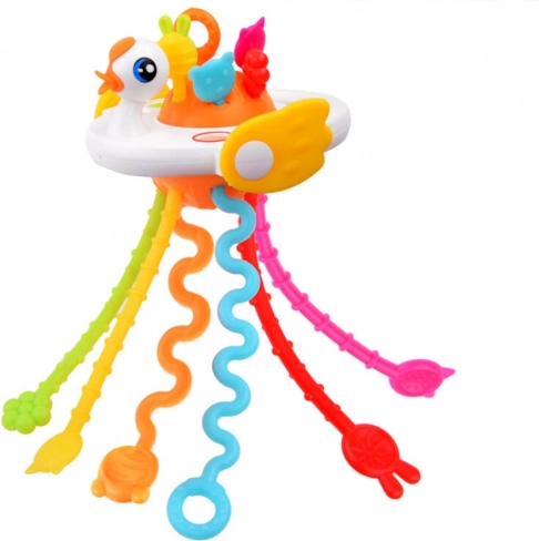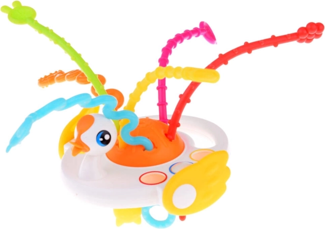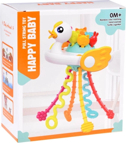 Ez a színes, hattyú alakú szenzoros játék támogatja a baba érzékszerveinek és készségeinek természetes fejlődését. A különböző felületek, a puha gombok, valamint a hanggal és rezgéssel ellátott húzható zsinórok kombinációjának köszönhetően a kicsik új ingereket fedeznek fel, gyakorolják a fogást és erősítik a szem–kéz koordinációt.