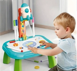Ébreszd fel a gyerekek fantáziáját a Kozmosz vetítős rajzasztallal. A rakéta alakú vetítőnek köszönhetően képek vetíthetők a felületre vagy a falra, amelyeket a gyerekek könnyedén átrajzolhatnak, és elsajátíthatják a helyes vonásokat. A játék fejleszti a kreativitást, a finommotorikát és a koncentrációt, 3 éves kortól ideális.