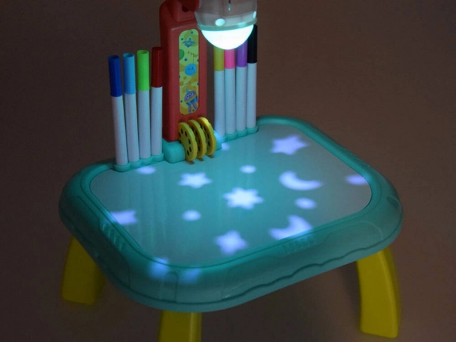 A vetítő karja könnyen állítható magasságban és dőlésszögben, így a kép jól látható az asztal felületén vagy a falon. A gyerekek kényelmesen átrajzolhatnak és saját történeteket alkothatnak.