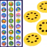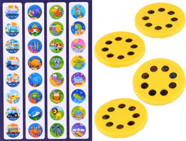 A csomagban 8 színes filc, 4 témakorong (űr, állatok, járművek, víz alatti világ), papírkészlet és stabil rajztábla található – nincs szükség semmi másra.